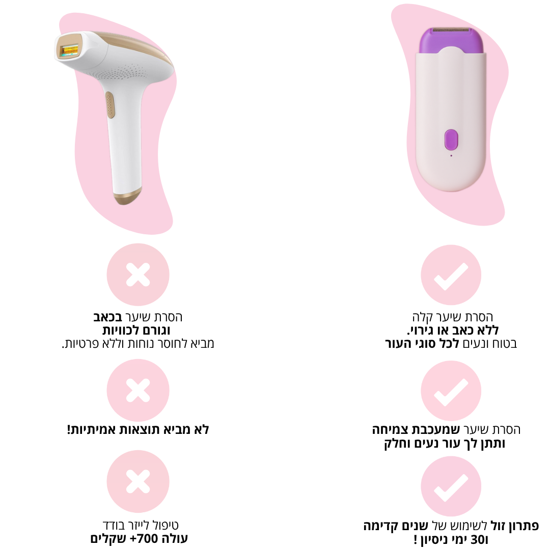 המכשיר שלנו נועד להחליף את השיטות הכואבות והמגורות – והוא עושה את זה בהצלחה.