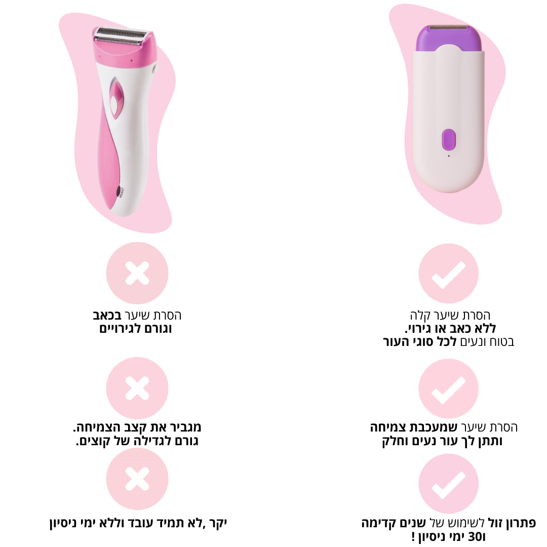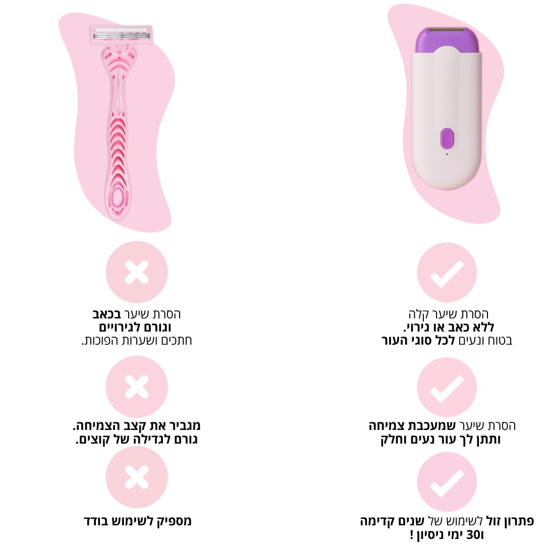 המכשיר שלנו מאפשר לך ליהנות מעור חלק, נעים וללא שיער – במהירות ובקלות.