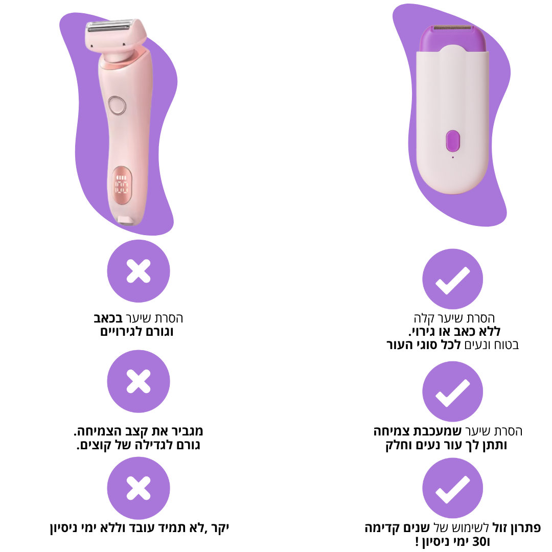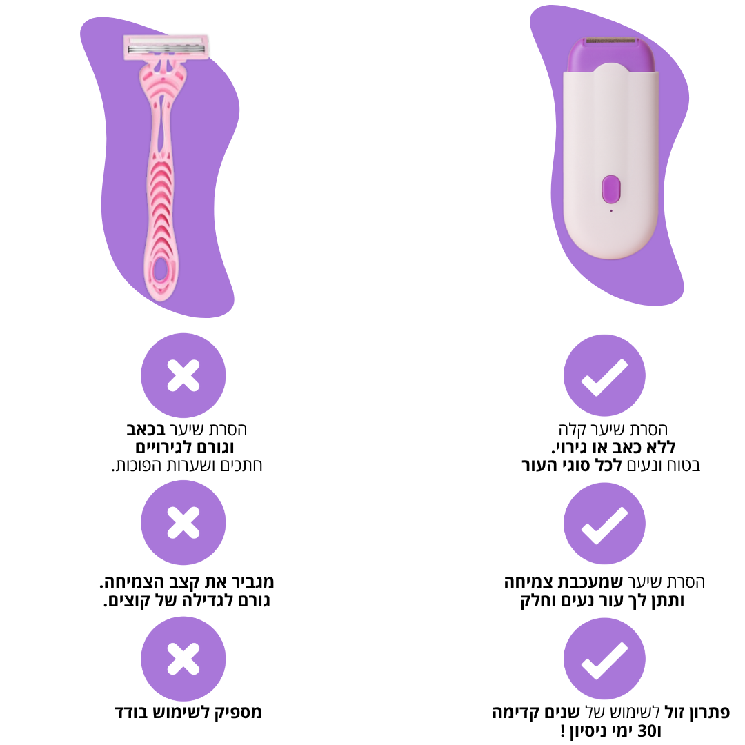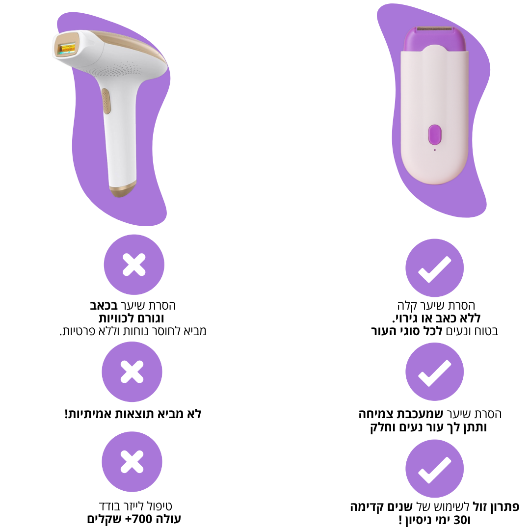 המכשיר שלנו מאפשר לך ליהנות מעור חלק, נעים וללא שיער – במהירות ובקלות.