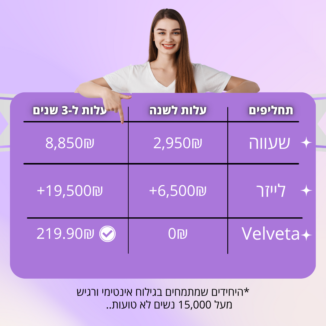 מחקר שביצענו על 20,000 לקוחות ישראליות מרוצות שרכשו את המכשיר של Velveta